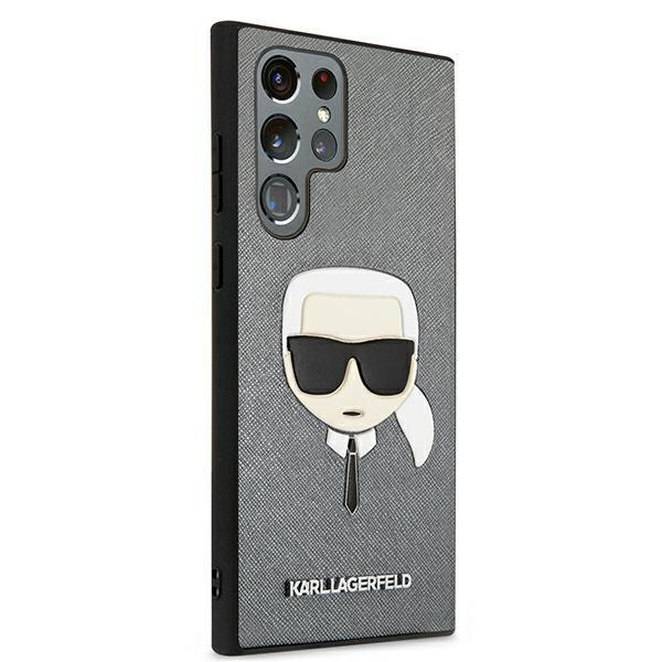 Karl Lagerfeld Saffiano Ikonik Karl`s Head - Étui pour Samsung Galaxy S22 Ultra (argent)