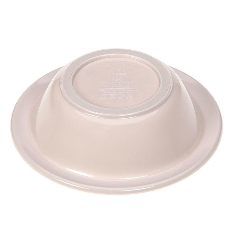 - Le bol rond en mélamine de la marque allemande LASSIG, d'un rose très clair, a un bord plus large avec de petites rayures et, sur le fond, un motif de licorne joyeuse avec un chapeau triangulaire et des poussières d'étoiles en violet foncé, rose néon et d