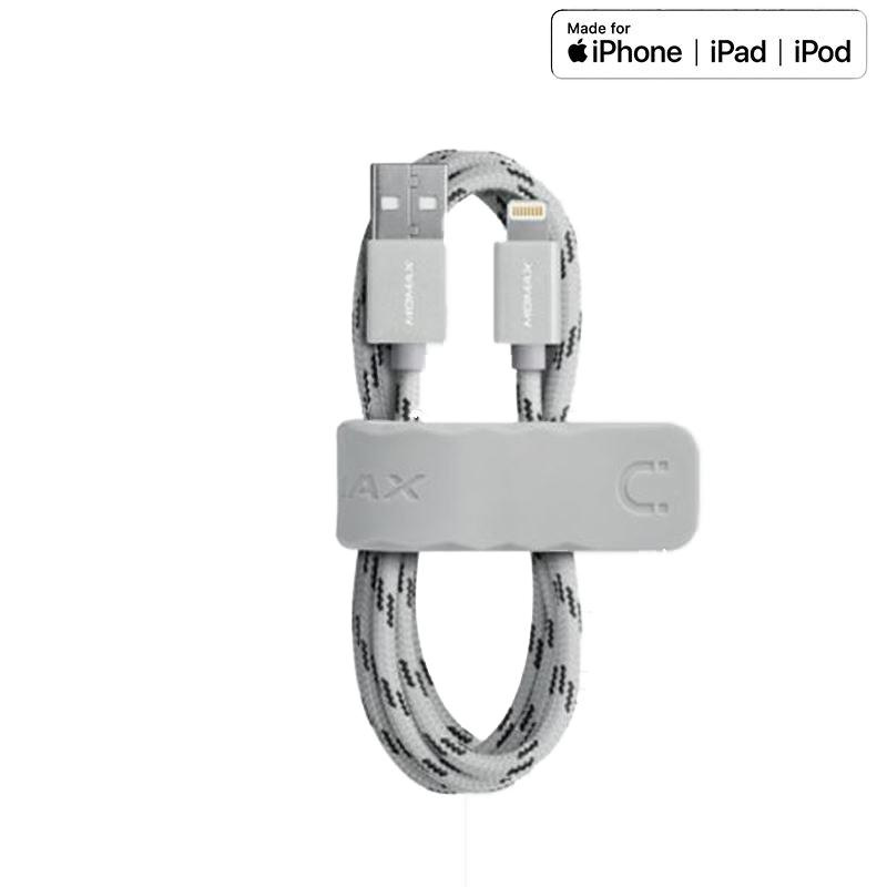 Momax Elite link - Câble de connexion USB vers Lightning MFi + support flexible, 2.4 A, 1 m (Argent)