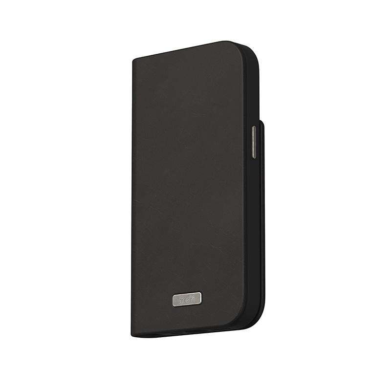 Moshi Overture MagSafe - Étui 3-en-1 en cuir avec rabat pour iPhone 15 (Noir minuit)