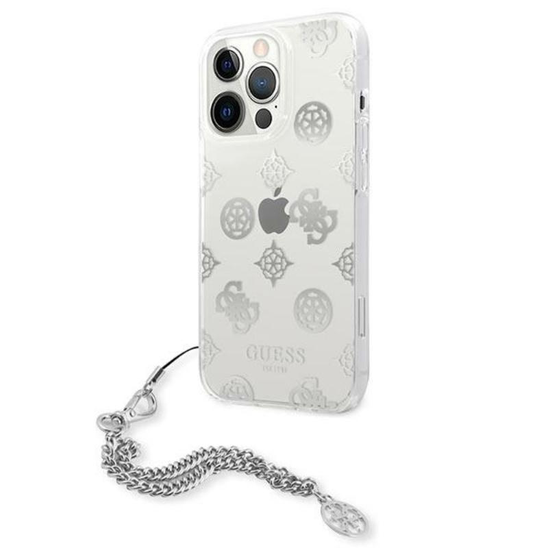 Poignée en chaîne Guess Peony - Coque iPhone 13 Pro Max (argent)