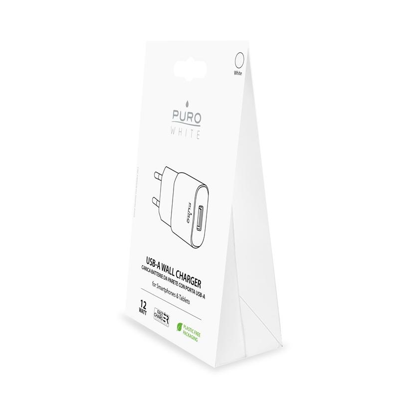 PURO Mini chargeur rapide de voyage blanc - Chargeur rapide USB-A 12 W 2,4 A (blanc)