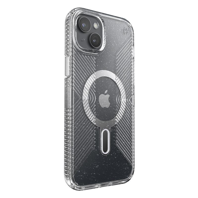 Presidio® Lux Glitter Grip MagSafe® avec la technologie antidérapante ClickLock™ Interlock est un étui transparent avec un aimant intégré, compatible avec les accessoires Apple MagSafe®.