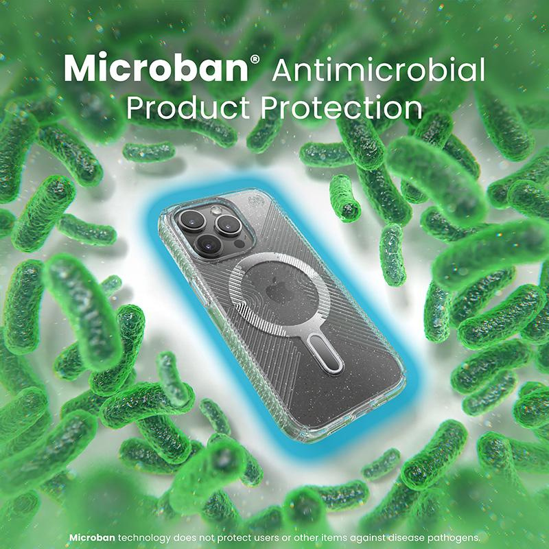 L'étui de protection original Perfect-Clear Grip offre également une protection antimicrobienne MICROBAN® (un leader mondial en matière de solutions antimicrobiennes avec un large portefeuille de plus de 25 technologies approuvées). L'ingrédient actif intégré dans la structure de l'étui arrête 99 % des bactéries qui s'accumulent à la surface de l'étui. La technologie MICROBAN® offre ainsi une protection à vie contre les bactéries responsables des taches et des odeurs et agit au niveau cellulaire pour maintenir la mallette propre.