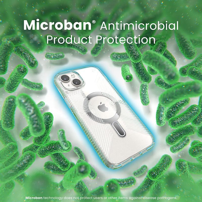 L'étui de protection original Perfect-Clear Grip offre également une protection antimicrobienne MICROBAN® (un leader mondial en matière de solutions antimicrobiennes avec un large portefeuille de plus de 25 technologies approuvées). L'ingrédient actif intégré dans la structure de l'étui arrête 99 % des bactéries qui s'accumulent à la surface de l'étui. La technologie MICROBAN® offre ainsi une protection à vie contre les bactéries responsables des taches et des odeurs et agit au niveau cellulaire pour maintenir la mallette propre.