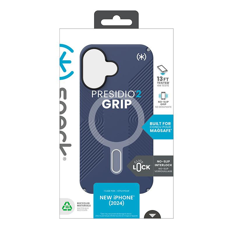 - Speck Presidio®2 Grip MagSafe® avec la technologie antidérapante ClickLock™ Interlock est un étui super protecteur avec aimant intégré, compatible avec les accessoires Apple MagSafe®.
