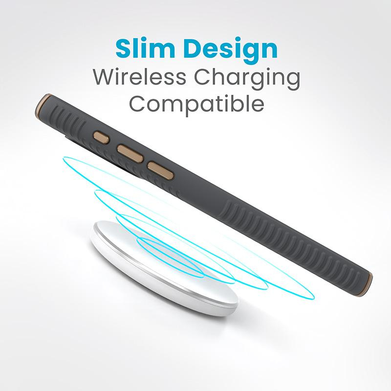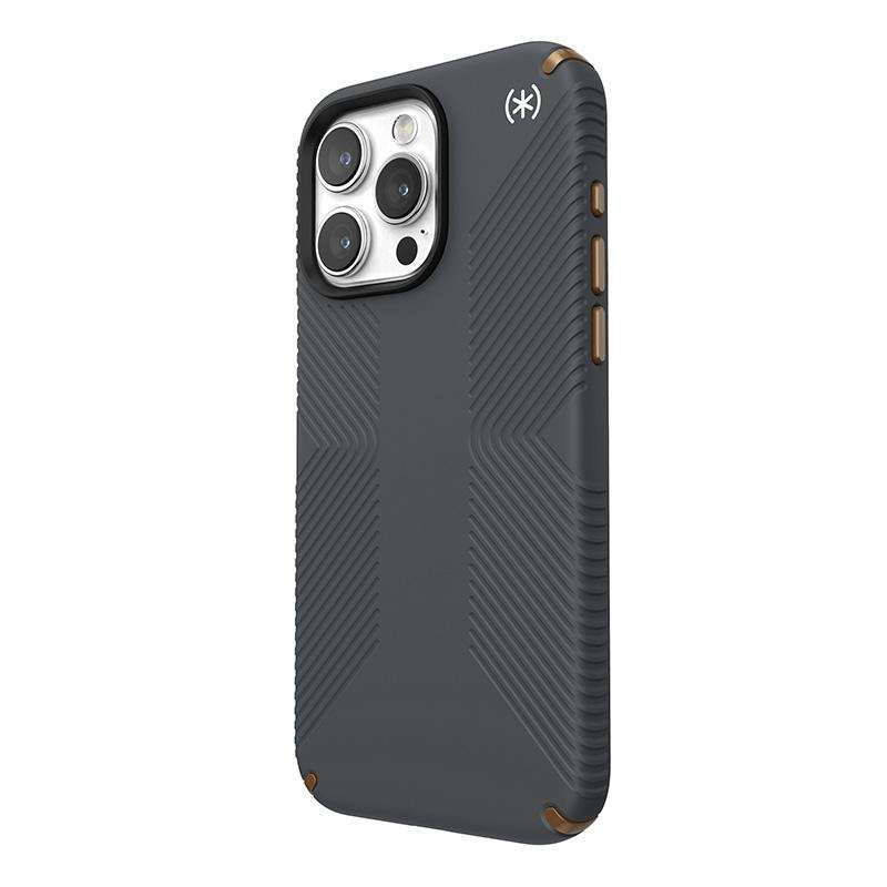 Speck Presidio2 Grip - Coque iPhone 15 Pro Max (Gris anthracite / Bronze froid / Blanc)