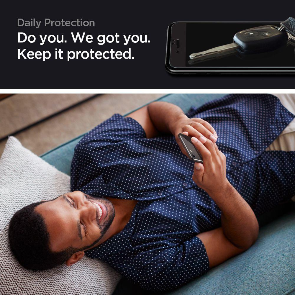 Spigen Alm Glass FC - Verre trempé pour iPhone SE (2022 / 2020) / 8 / 7 (Cadre noir)