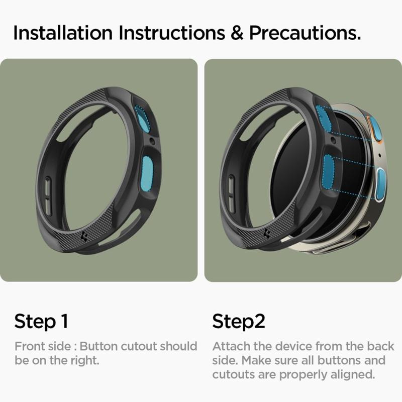 The Spigen Liquid Air is a case made of durable and shockproof flexible TPU. It does not significantly thicken the watch, maintaining its original shape while providing it with scratch protection. It is super light and easy to install.