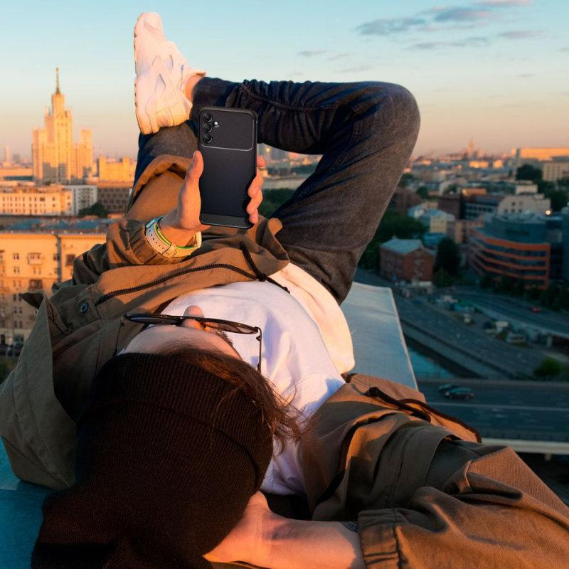 L'étui Spigen Rugged Armor est fabriqué en TPU flexible, durable et résistant aux chocs, pour une meilleure adhérence et un plus grand confort. Ne rend pas le téléphone beaucoup plus épais, conservant sa forme originale, tout en offrant une protection contre les rayures. L'étui est léger et facile à mettre en place, et ses bords légèrement saillants protègent l'appareil photo et l'écran des rayures sur les surfaces planes.