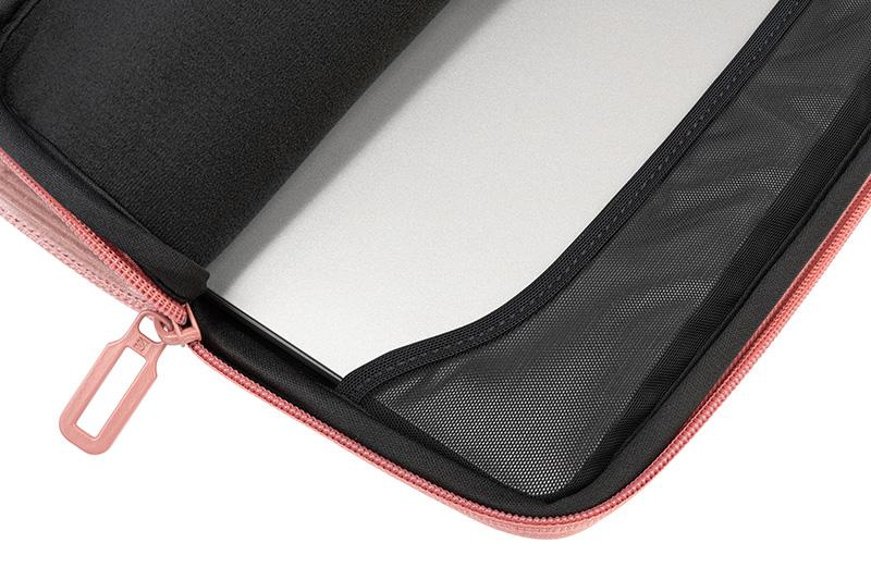 Les coutures externes Flat Lock sont dissimulées afin d'optimiser l'adaptation de la housse aux dimensions de l'ordinateur portable.