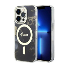 Guess Golden Marble MagSafe - Case for iPhone 14 Pro Max (Black)