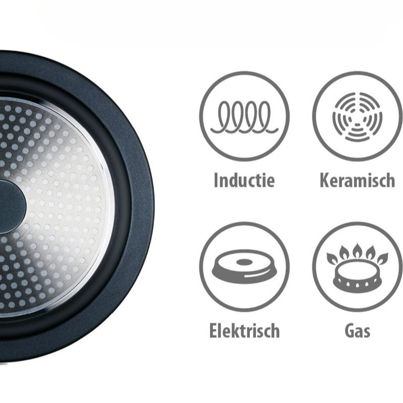 - Univerzális alap: minden típusú főzőlappal kompatibilis.