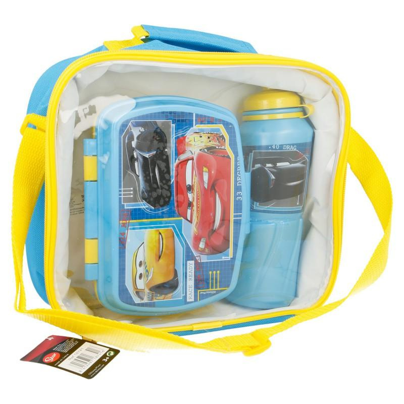 Autók - Reggeli / uzsonnás doboz készlet + bidon (530 ml) táskában