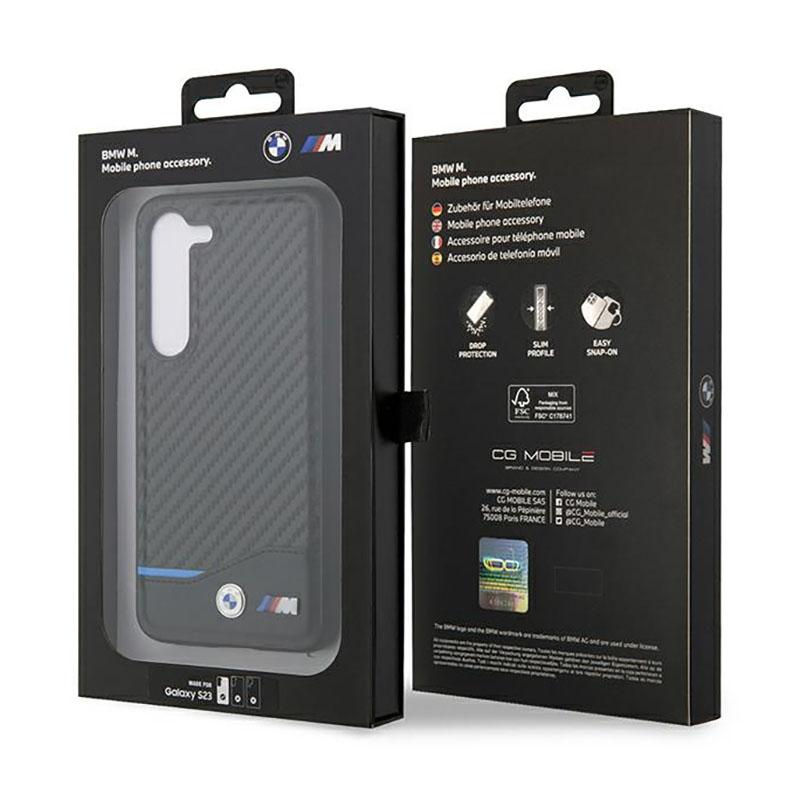 BMW Leather Carbon Blue Line - tok Samsung Galaxy S23-hoz (fekete)