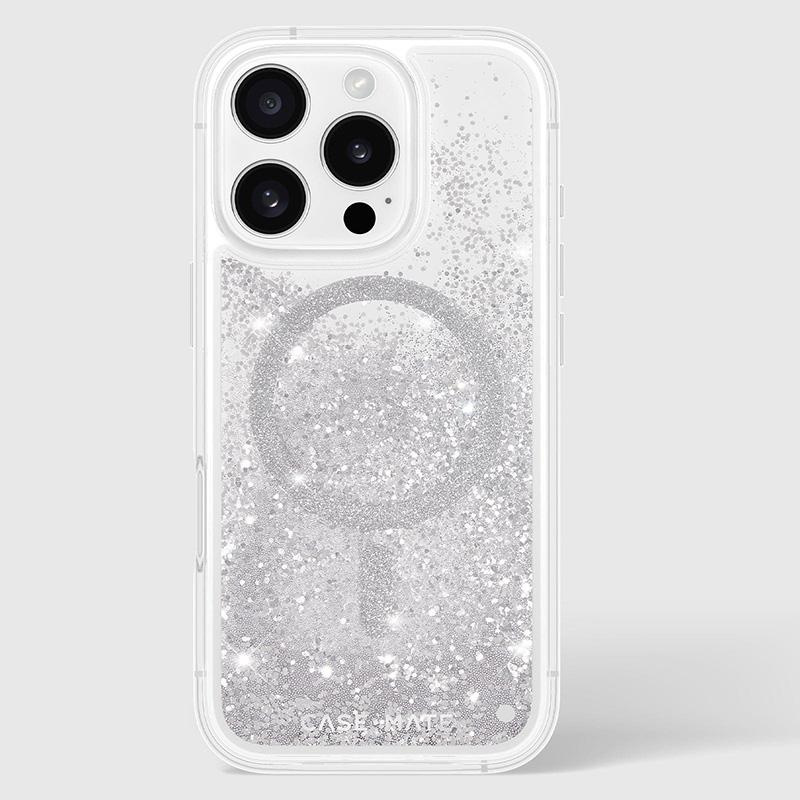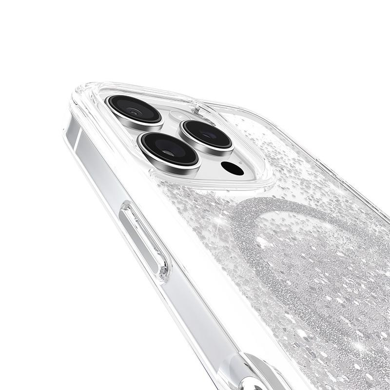 - A Case-Mate Waterfall MagSafe tok egy igazi műalkotás, amely egyedi, fényes kialakításával nyűgöz le. A tok belseje csillogó csillámokkal van tele, amelyek folyékony vízesésszerű hatást keltenek, és a telefon minden egyes mozdulatával életre kelnek.