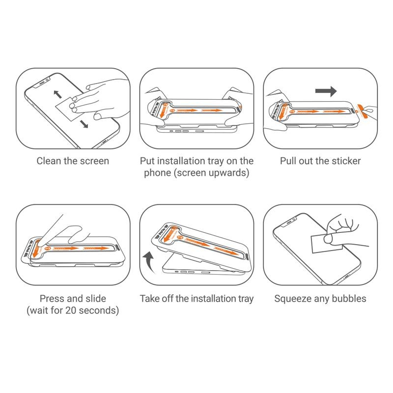 Az EasyShield™ üvegeknél alkalmazott innovatív beépítési módszer lehetővé teszi, hogy az üveg egy szempillantás alatt felhelyezhető legyen. Az erre a célra kifejlesztett Press & Slide™ eszköz tökéletesen az iPhone képernyőjéhez igazítja az üveget, a Dust-Free matrica pedig biztosítja, hogy az üveg alatt nem marad por.