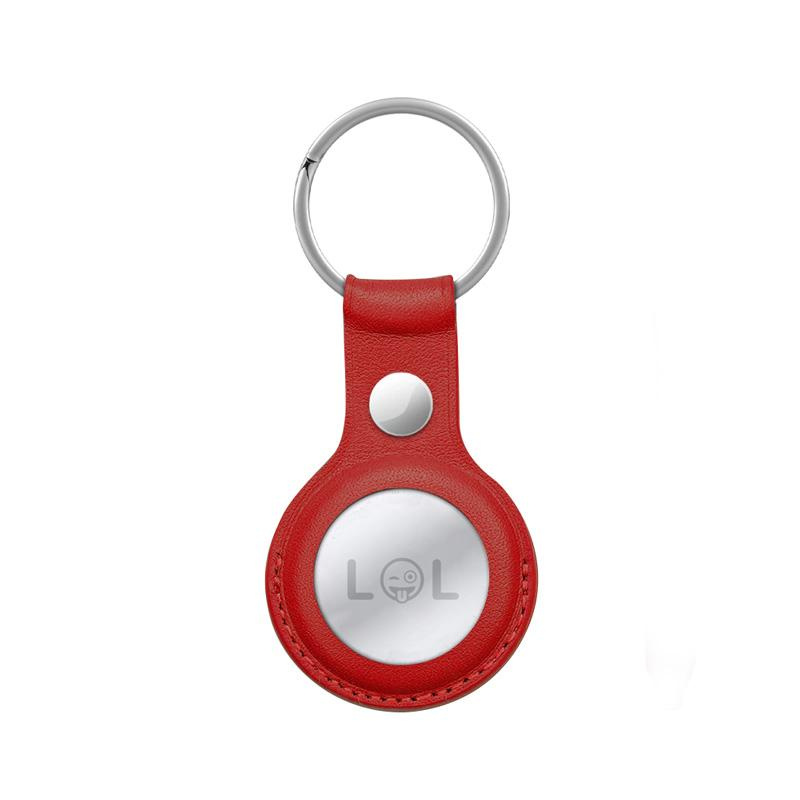 Crong Leather Case with Key Ring - Leather protective pendant case for Apple AirTag (Red)