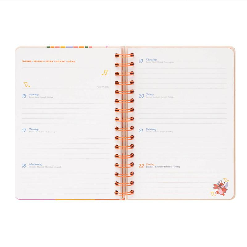A Disney Stitch heti naptár / tervező 2025/2026-ra egy bájos naptár 12 hónapra, 2025 augusztusától 2026 júliusáig.