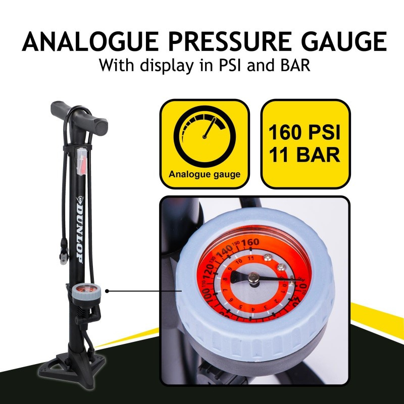 Dunlop - Floor pump for bikes, balls, mattresses with pressure gauge (Black)