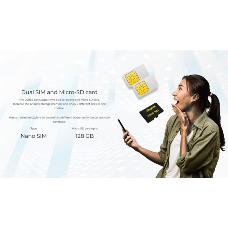 Az U608S okostelefon két SIM-kártyát és egy Micro-SD-kártyát támogat. A telefon memóriájának növelése és 2 különböző SIM-kártya használata egy telefonban. A jobb hálózati lefedettség érdekében 2 tervezetet kombinálhat, vagy két különböző szolgáltatót választhat.