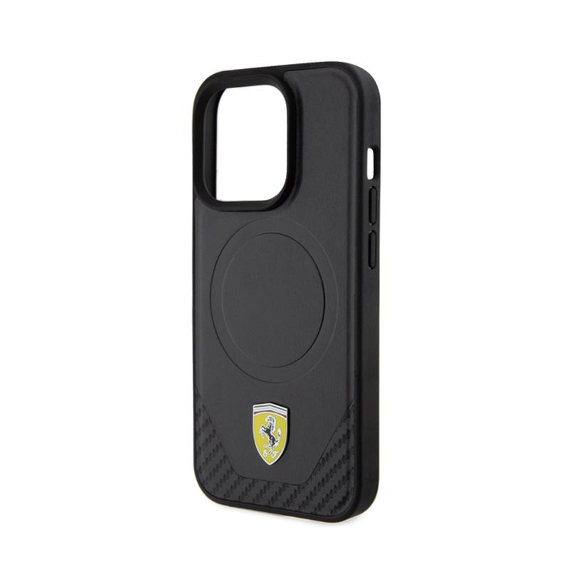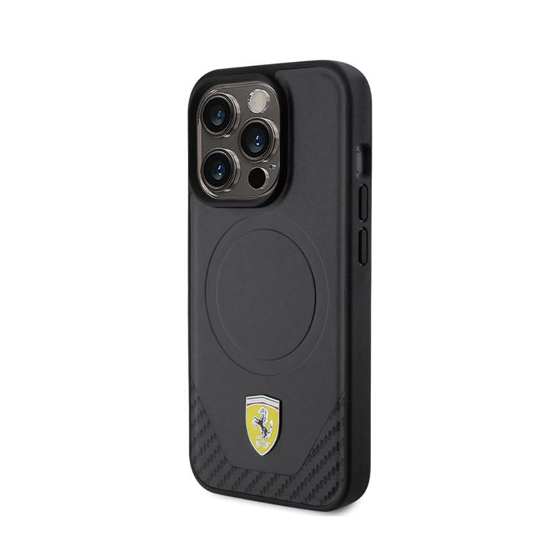 Ferrari Carbon Metal Logo MagSafe - Case for iPhone 15 Pro (Black)