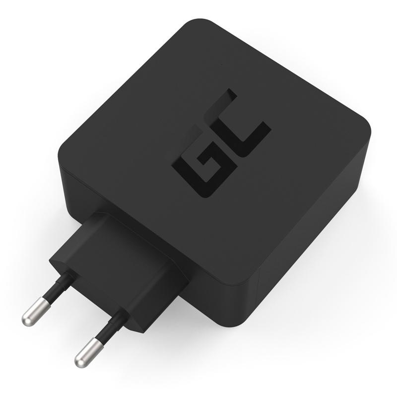 Green Cell USB Type C charger with 60W Power Delivery fast charging function. The power adapter is ideal for phones, tablets and laptops with a USB-C port (eg Asus ZenBook 3, HP Specter 13). An additional USB port with fast charging provides full versatility. One quick charger for all devices - charge your laptop and phone with the same power adapter.