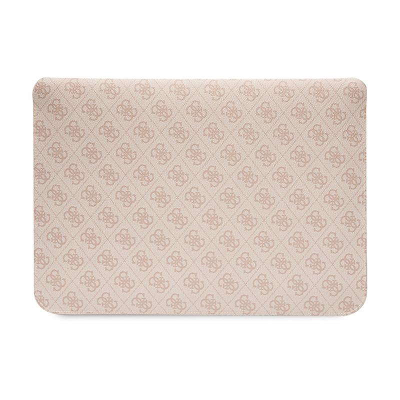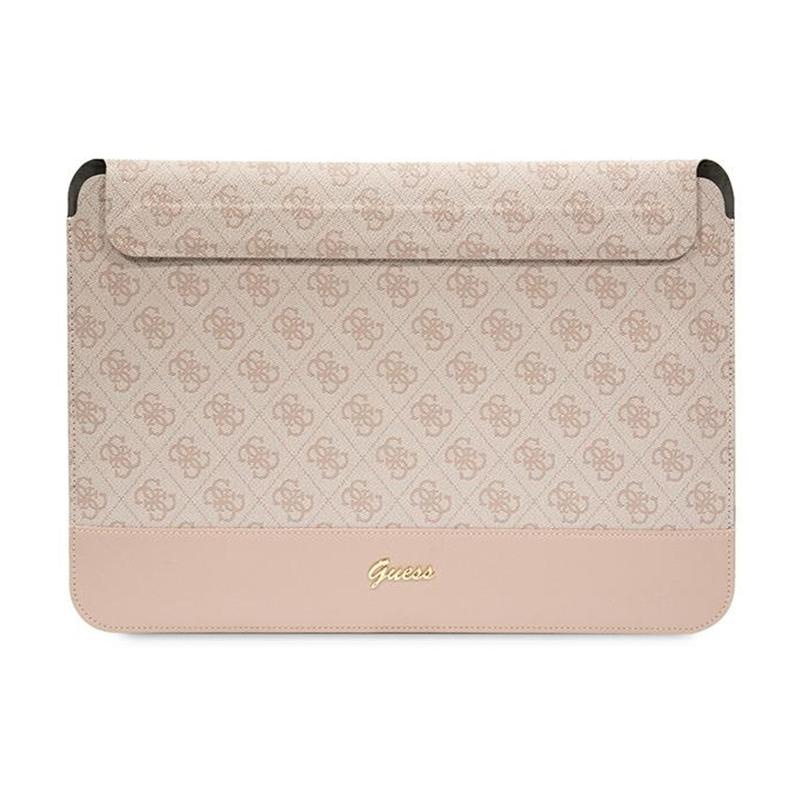 Guess 4G Stripe Metal Logo case for a 14-inch notebook. The product features one of the more famous motifs used by Guess, the 4G emblems, which are positioned on a pleasant-to-touch texture in Saffiano eco leather.