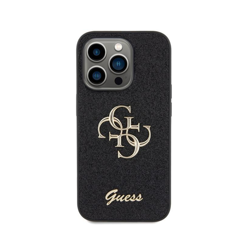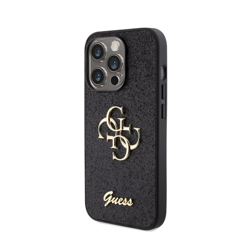 Guess Glitter Script Big 4G - Case for iPhone 15 Pro (Black)