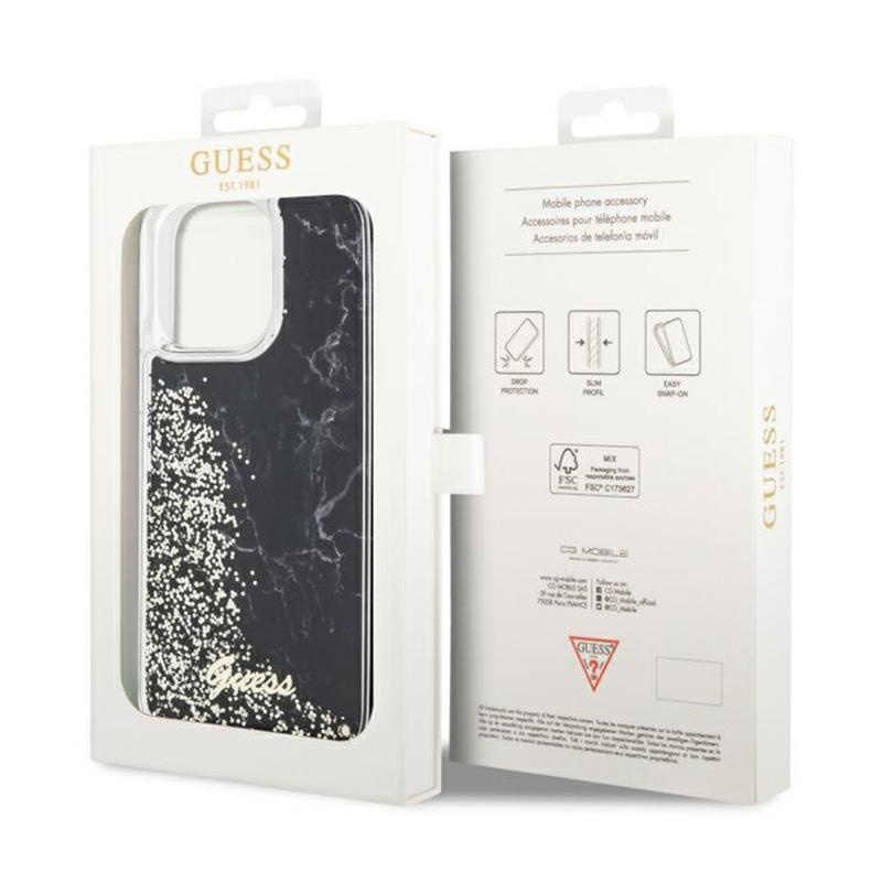 Guess Liquid Glitter Marble - Case for iPhone 14 Pro Max (Black)