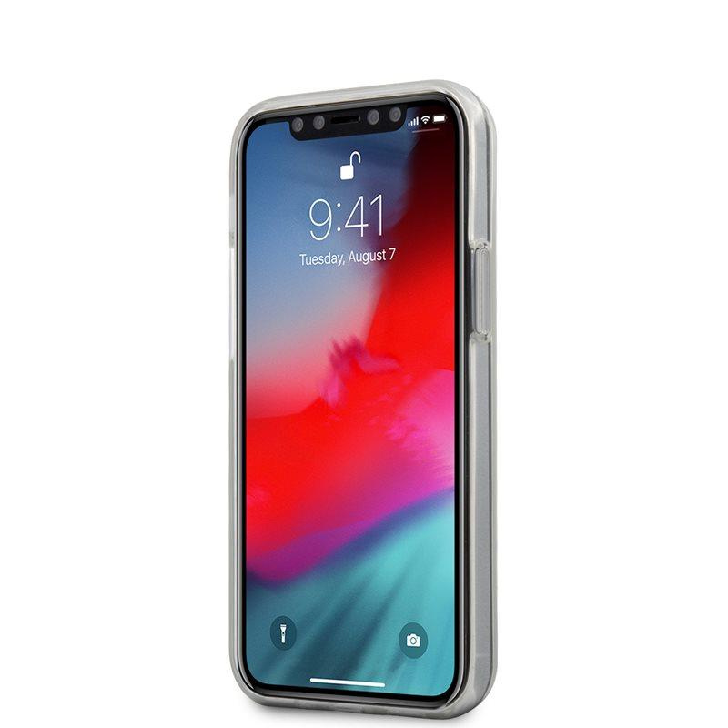 The case is designed to protect the smartphone from scratches, made of hard polycarbonate and a flexible TPU frame for easy installation. Referring to the image of Guess, the triangular logo of the brand was emphasized with a shimmering effect and placed on a metallic background. The case provides access to all function keys, sockets and ports of the phone without limiting its functionality, so you can fully use your smartphone.