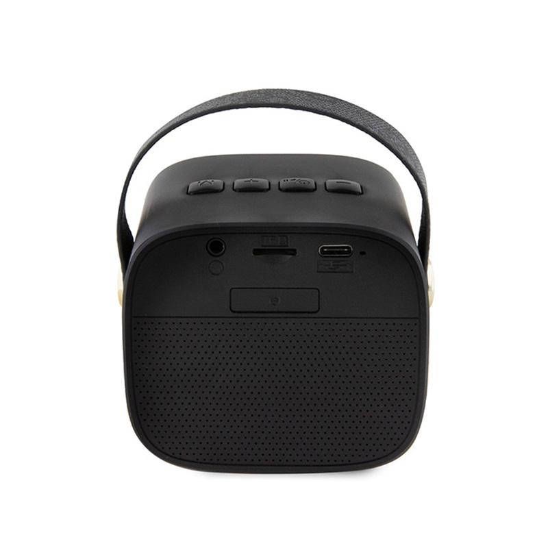 Guess Mini Bluetooth Speaker 4G Leather Script Logo with Strap - Bluetooth Speaker V5.3 (Black)