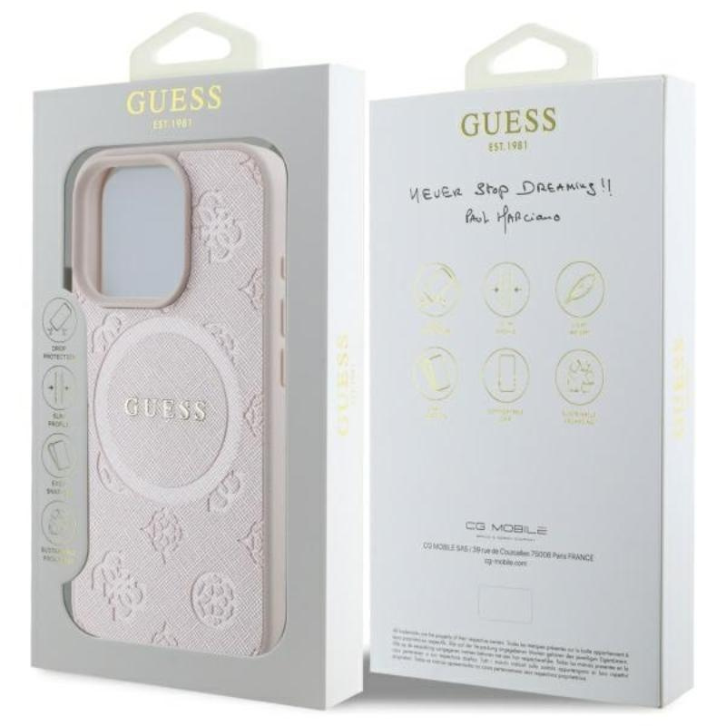 Guess Saffiano Peony Classic Logo MagSafe - Case for iPhone 16 Pro Max (pink)