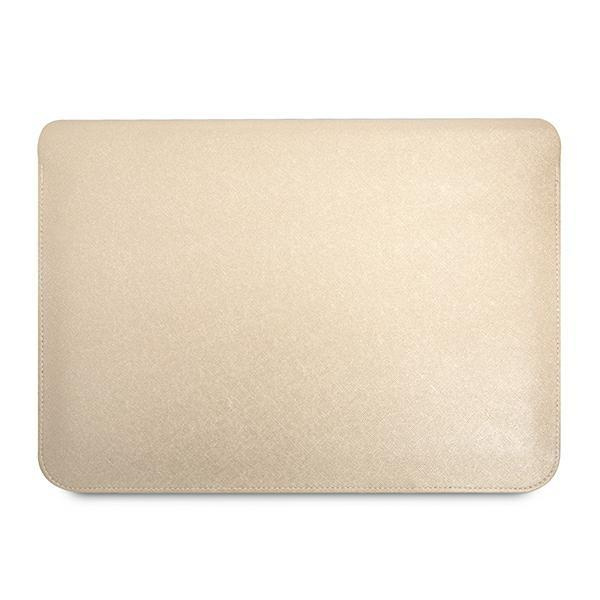 Guess Saffiano Triangle Logo Sleeve Case for 16" notebooks. Made of pleasant-to-touch textured saffiano eco-leather. Triangle-shaped Guess logo.