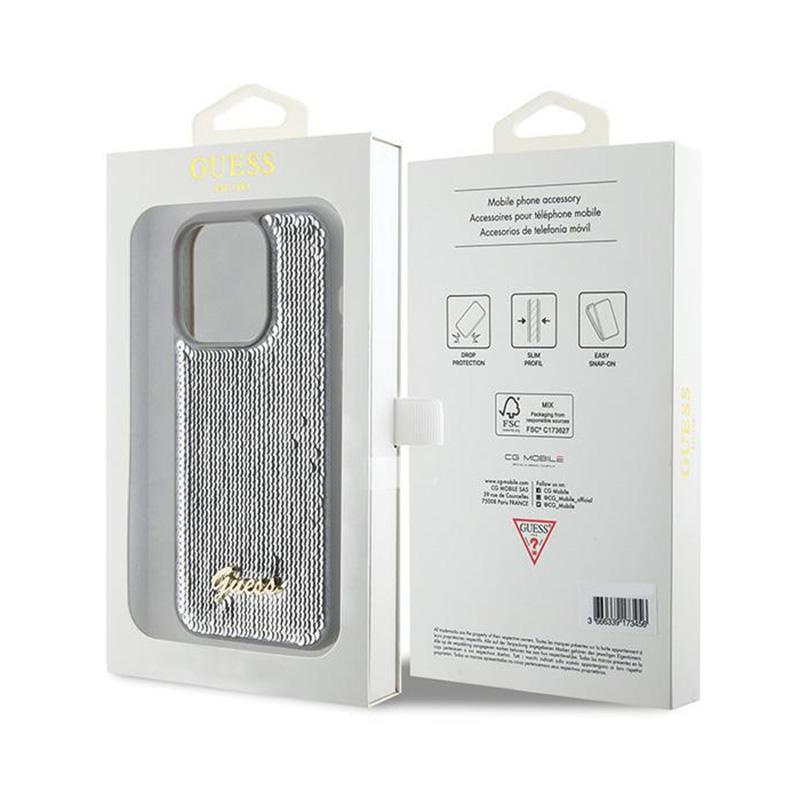 Guess Sequin Script Metal - Case for iPhone 15 Pro Max (Silver)