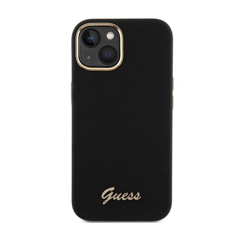 Guess Silicone Script Metal Logo & Frame - iPhone 15 Case (black)