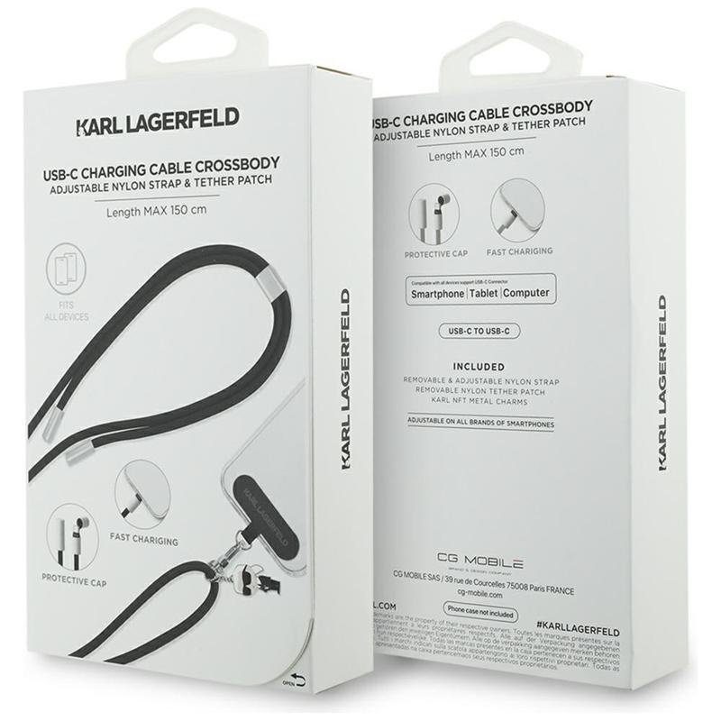Karl Lagerfeld Crossbody Strap Ikonik Charm - Universal Phone Strap / USB-C to USB-C Cable 1.5m (Black)
