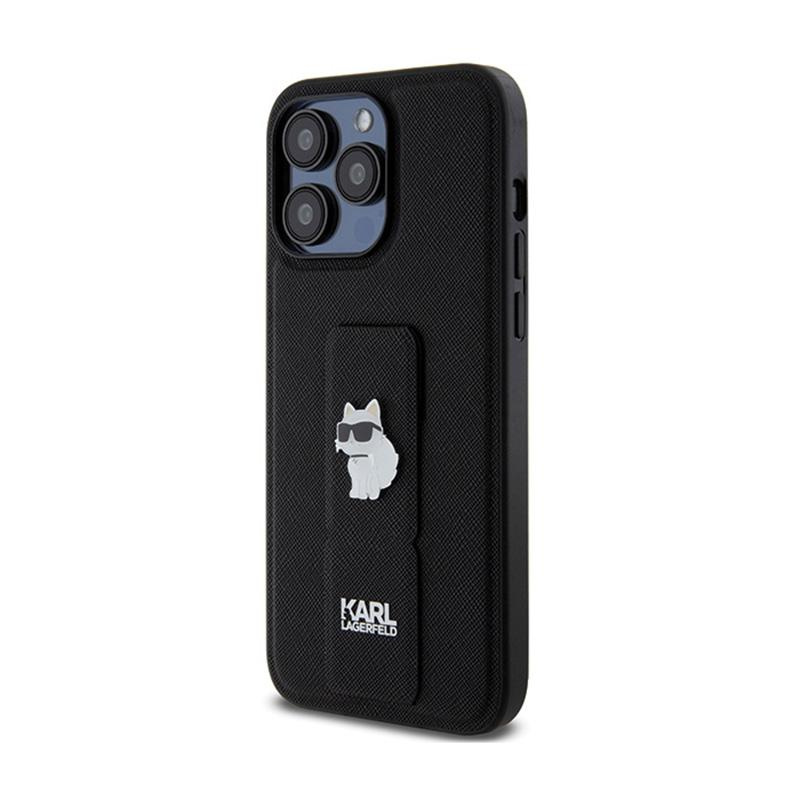 Karl Lagerfeld Gripstand Saffiano Choupette Pins - iPhone 13 Pro Case (black)