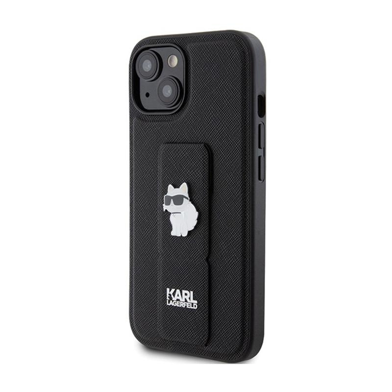 Karl Lagerfeld Gripstand Saffiano Choupette Pins - iPhone 15 Case (Black)