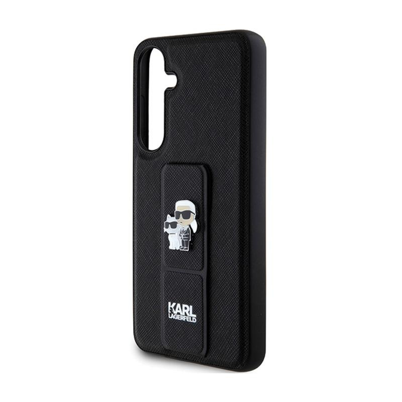 Karl Lagerfeld Gripstand Saffiano Karl & Choupette Pins - Samsung Galaxy S24+ Case (black)