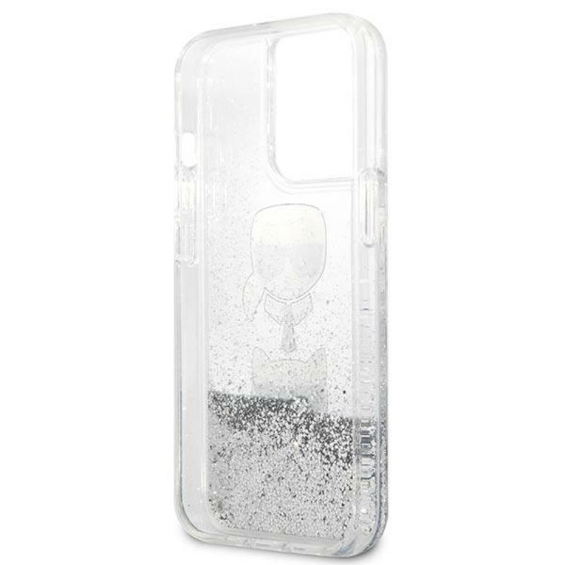Karl Lagerfeld Liquid Glitter Karl & Choupette Head - Case for iPhone 13 Pro (Silver)