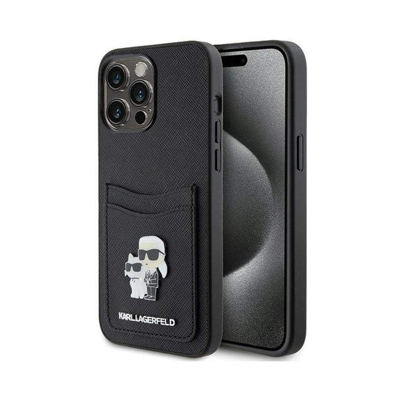Karl Lagerfeld Saffiano Cardslot Karl & Choupette fém logó - iPhone 15 Pro Max tok (fekete)