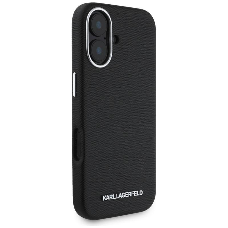 Karl Lagerfeld Saffiano Full Wrapped Elongated Metal Logo MagSafe - Case for iPhone 16 (black)
