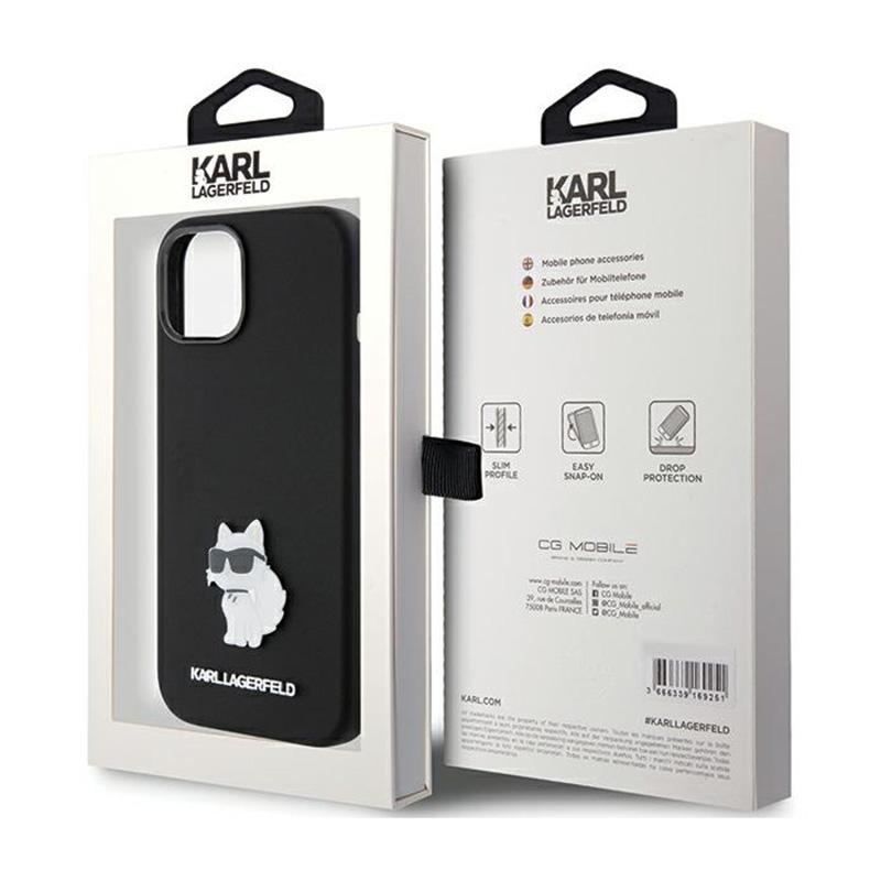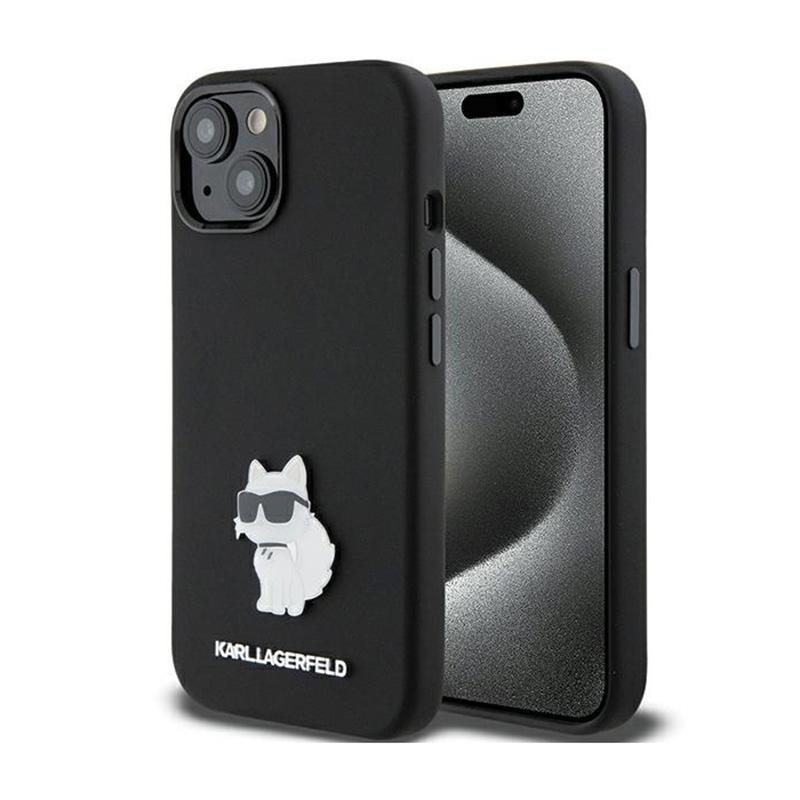 Karl Lagerfeld Silicone Choupette Metal Pin - iPhone 15 Plus Case (Black)
