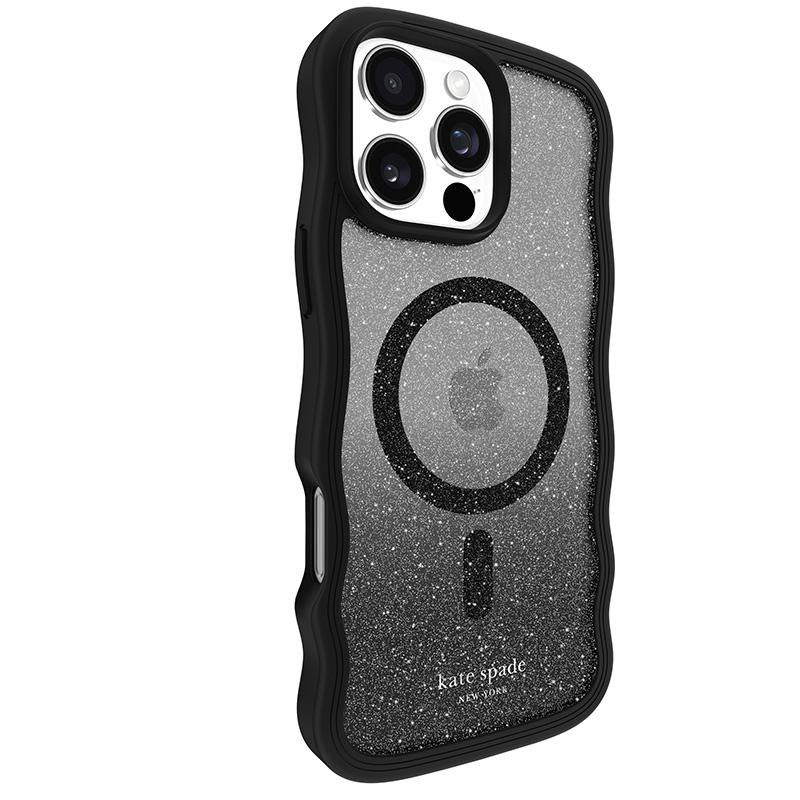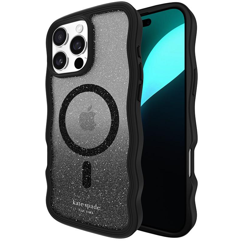 - A Kate Spade New York Wavy MagSafe tok iPhone 16 Pro Max készülékhez a funkcionalitás és a divatos design stílusos kombinációja. Az elegáns fekete brokát ombre borítású, egyedi hullámos kialakítása egyedi megjelenést kölcsönöz a telefonjának, amely tökéle