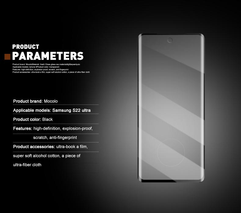 Mocolo 3D 9H Full Glue - Teljes képernyővédő üveg Samsung S22 Ultra (fekete)
