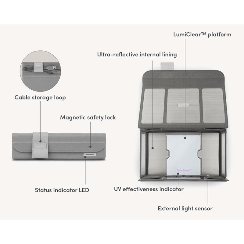 A Deep Purple™ a világ első nagy teljesítményű UV-C LED-lámpákkal és LumiClear™ technológiával felszerelt hordozható fertőtlenítője. Az ilyen típusú normál meredekvágóktól eltérően a Moshi Deep Purple egyszerre fertőtleníti az egész tárgyat minden oldalról. Az UV-C fény biztonságos, hatékony és vegyszermentes módszer a potenciális szennyezőforrások semlegesítésére. A hagyományos UV-C lámpákkal ellentétben a Deep Purple™-ben használt LED-ek hosszú élettartamúak, azonnal aktiválódnak és nem tartalmaznak higanyt.