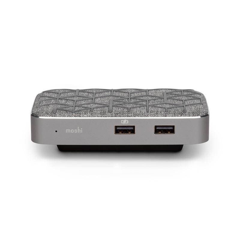Moshi Symbus Q - USB-C hub + Qi induktív vezeték nélküli töltő iPhone és Android készülékhez (szürke)