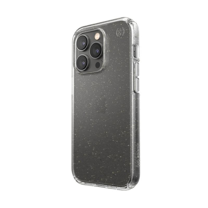 Speck Presidio Perfect-Clear with Glitter - iPhone 14 Pro tok MICROBAN bevonattal (átlátszó / arany csillogás)