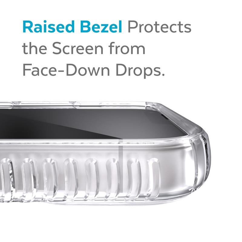 A Presidio® Perfect Clear with Grips + MagSafe egy átlátszó tok beépített mágnessel, amely kompatibilis az Apple MagSafe® tartozékokkal.